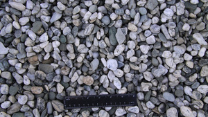 Small 8-14mm pebbles of predominantly white with some creamy gold & grey showing through.
